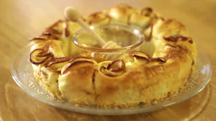 • במרכז הריק של המאפה, מניחים צנצנת דבש ומגישים.
