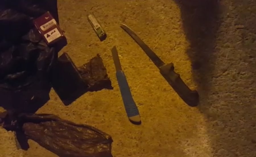הסכינים שהמחבל נשא (צילום: חטיבת דובר המשטרה)