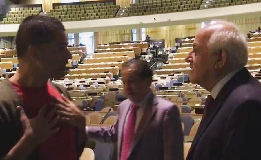נמצאה הדרך לשלום? הקומיקאי נדב אבקסיס, נפגש באו"ם עם השגריר הפלסטיני ריאד מנסור, והציע בהומור הסדר מדיני חדש, במסגרתו יקבלו הפלסטינים את פתח תקווה, אם המושבות.