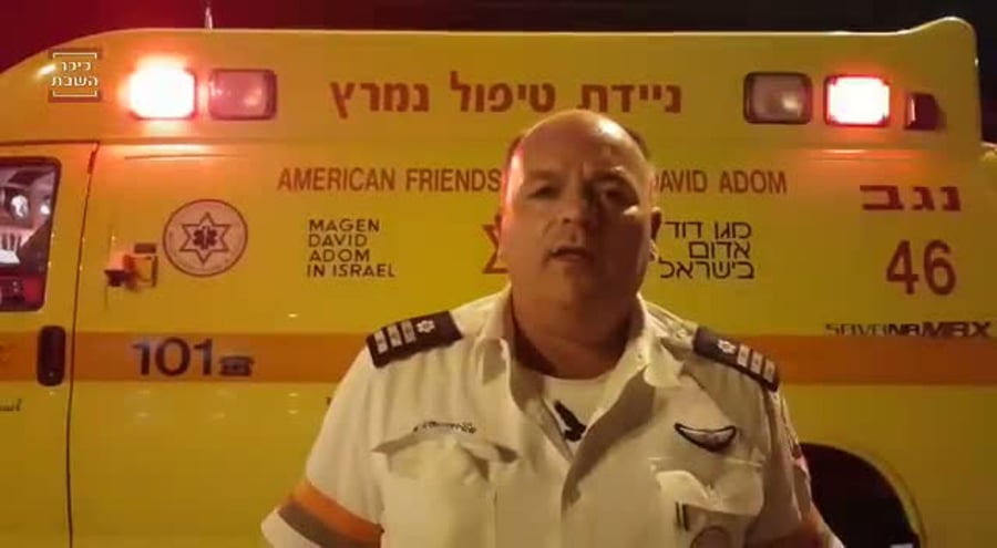 פאראמדיק מד"א זיו שפירא סיפר: "כשהגענו למקום ראינו צעיר כבן 20 שוכב מחוסר הכרה ללא דופק וללא נשימה עם פצעי דקירה בפלג גופו העליון, הענקנו לו טיפול רפואי מציל חיים וביצענו פעולות החייאה מתקדמות שבסופן נאלצנו לקבוע את מותו".