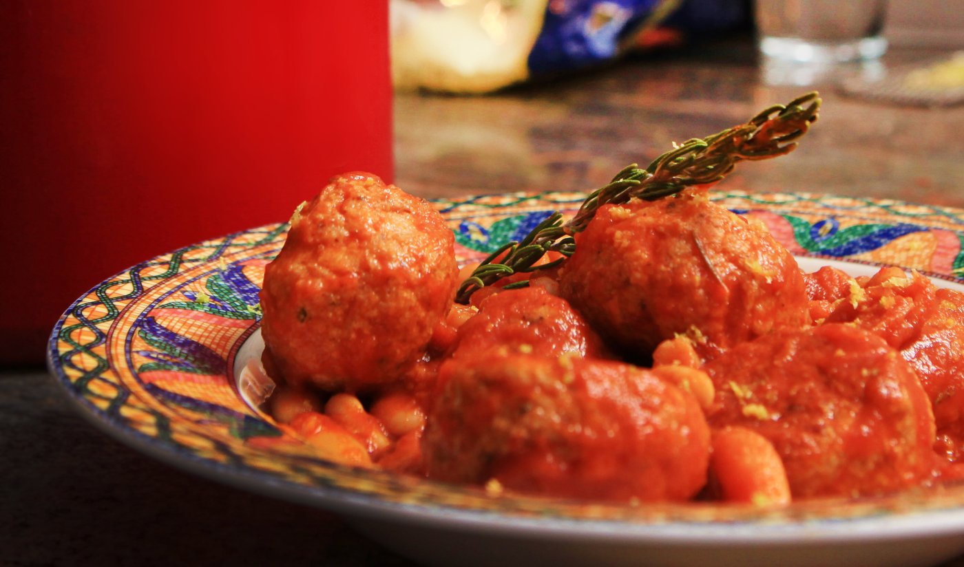 4. יוצרים קציצות מכמות של 2 כפות מהתערובת, ומניחים בזהירות את הקציצות על הרוטב. מערבבים קלות, שהרוטב יכסה היטב את הקציצות.