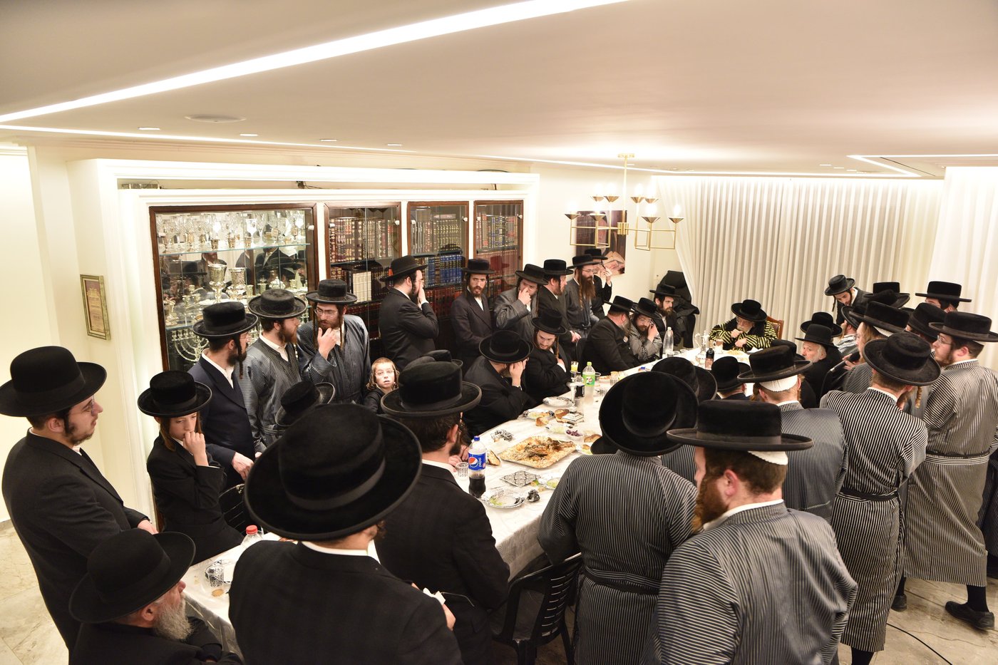 בליל שבת ערך האדמו"ר את שולחנו, במשך חמש שעות רצופות, מהשעה 9 עד השעה 2 לפנות בוקר, אלפים מתושבי העיר נהרו לחזות בטיש המרומם שהתקיימה באודיטוריום העירוני בעיר.