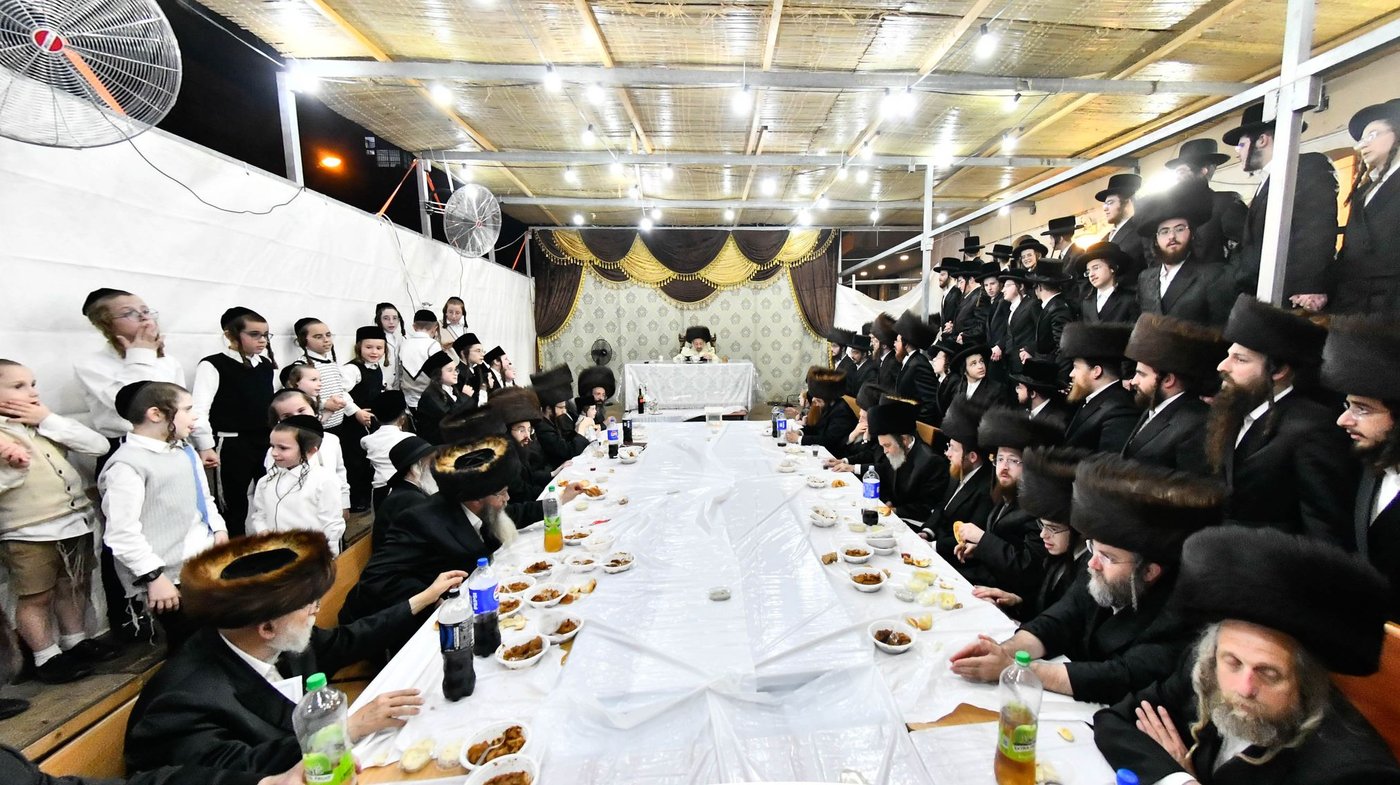 האדמו"ר מדעעש ערך אמש (חמישי) טיש לרגל אושפיזין קדישין בסוכת החסידות שנבנתה ברחוב רבי טרפון בבני ברק | במהלך הטיש זימרו ט"ו שיר המעלות כנהוג לעת זו (חסידים)