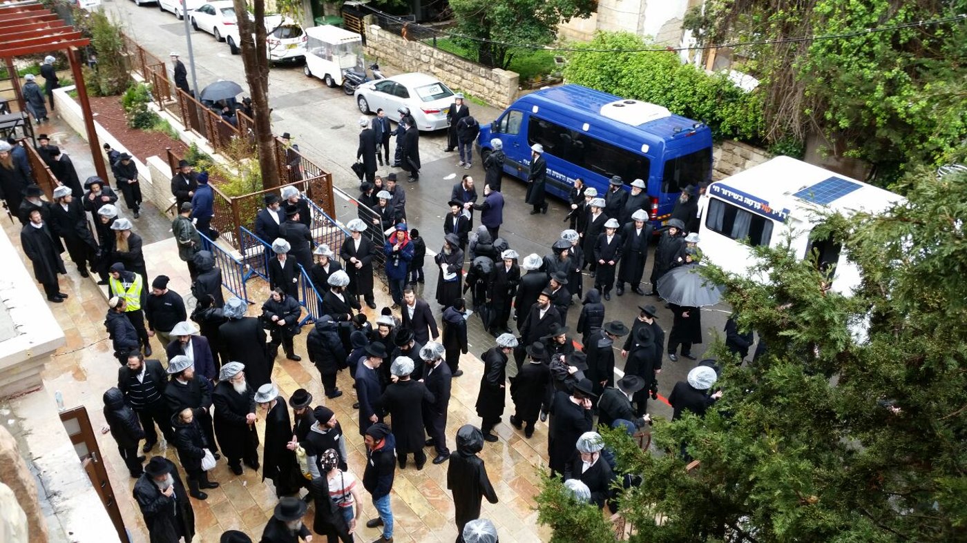 מסע הלווייה יצא מהיכל ישיבת ערלוי בשכונת קטמון בירושלים, בדרכה להר תמיר. בעת שנכנסה מיטת הרבי זצ"ל רל היכל בית המדרש נשמעו במקום זעקות שבר וקולות בכי של החסידים היתומים.
