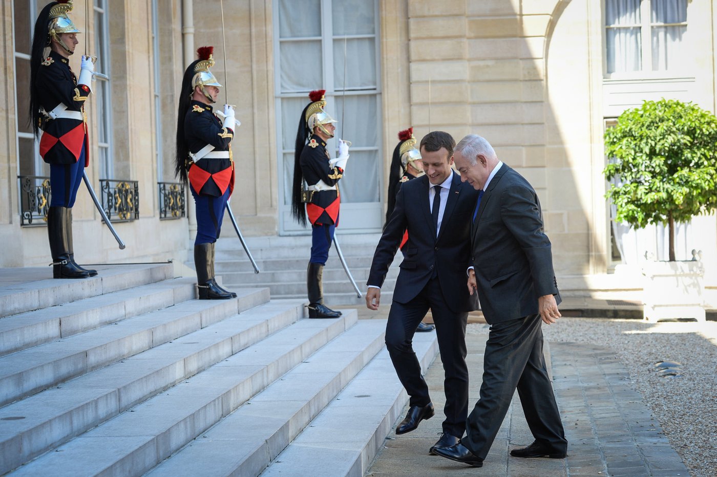 ראש הממשלה בנימין נתניהו התקבל בכבוד רב על-ידי נשיא צרפת עמנואל מקרון בארמון האליזה • בציוץ בטוויטר כתב ראש הממשלה: "תודה על קבלת הפנים החמה" • צפו (מדיני)