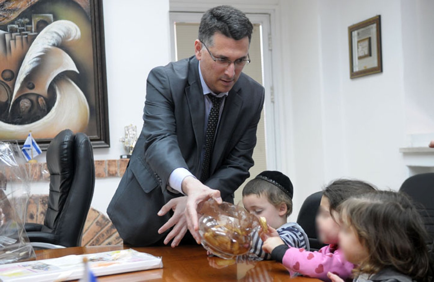 ילדי גן הרמוני חלוץ השילוב בישראל מאז שנת 1985 של רשת החינוך החרדית "עלי-שיח" בהר נוף, הגיעו הבוקר ללשכתו של שר החינוך גדעון סער, בירושלים, על מנת להעניק לשר משלוח מנות לחג הפורים.