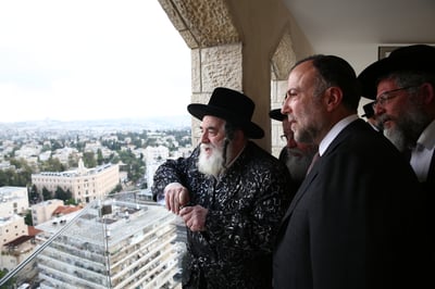 הרה״צ רבי חיים מאיר הגר, בנו הגדול של האדמו״ר מויז׳ניץ שמונה לאחרונה לאב״ד הקרייה בבני ברק נפגש עם הנגיד דוד הגר, ממשפחת הרבי ומתומכי הנח"ל החרדי (חרדים בצה"ל)