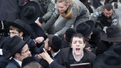 "העדה החרדית" הזהירה שלא לעשות שימוש באלימות בהפגנות השבת? אז מה. כ-100 מפגינים לקחו חלק בהפגנות, כמה השליכו חפצים לעבר שוטרים. משגיחי העדה החרדית ניסו להרחיק את הילדים מאיזור ההפגנה אך ללא הצלחה. לטענתם, הילדים שהשתוללו בהפגנה אינם נמנים על אנשי העדה החרדית