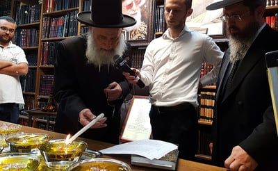 הגאון רבי ראובן אלבז, מגדולי המחזירים בתשובה, הדליק הערב על שולחן פוסק הדור הגאון רבי עובדיה יוסף נרות שנשלחו מהמקובל רבי דוד אבוחצירא. תיעוד מיוחד (חרדים)
