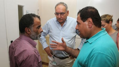 רות שפירא אמה של איילה, שנפצעה מבקת"ב, הגיעה אמש לתל השומר לבקר את משפחת דוואבשה שבנם נרצח כשמחבלים הציתו את ביתם. הסב: "רוב האנשים טובים, יש רק מיעוט קיצוני" (בארץ)