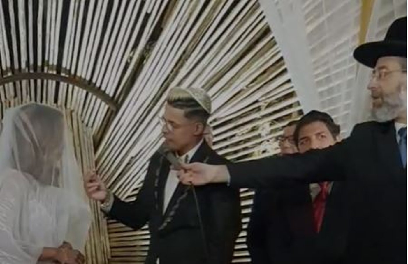 בסידור חופה וקידושין כובד הרב הראשי לישראל הגאון הרב דוד לאו. בתפקיד העדים היו חברו הטוב רב הסלבס מרדכי חסידים ואברך נוסף.