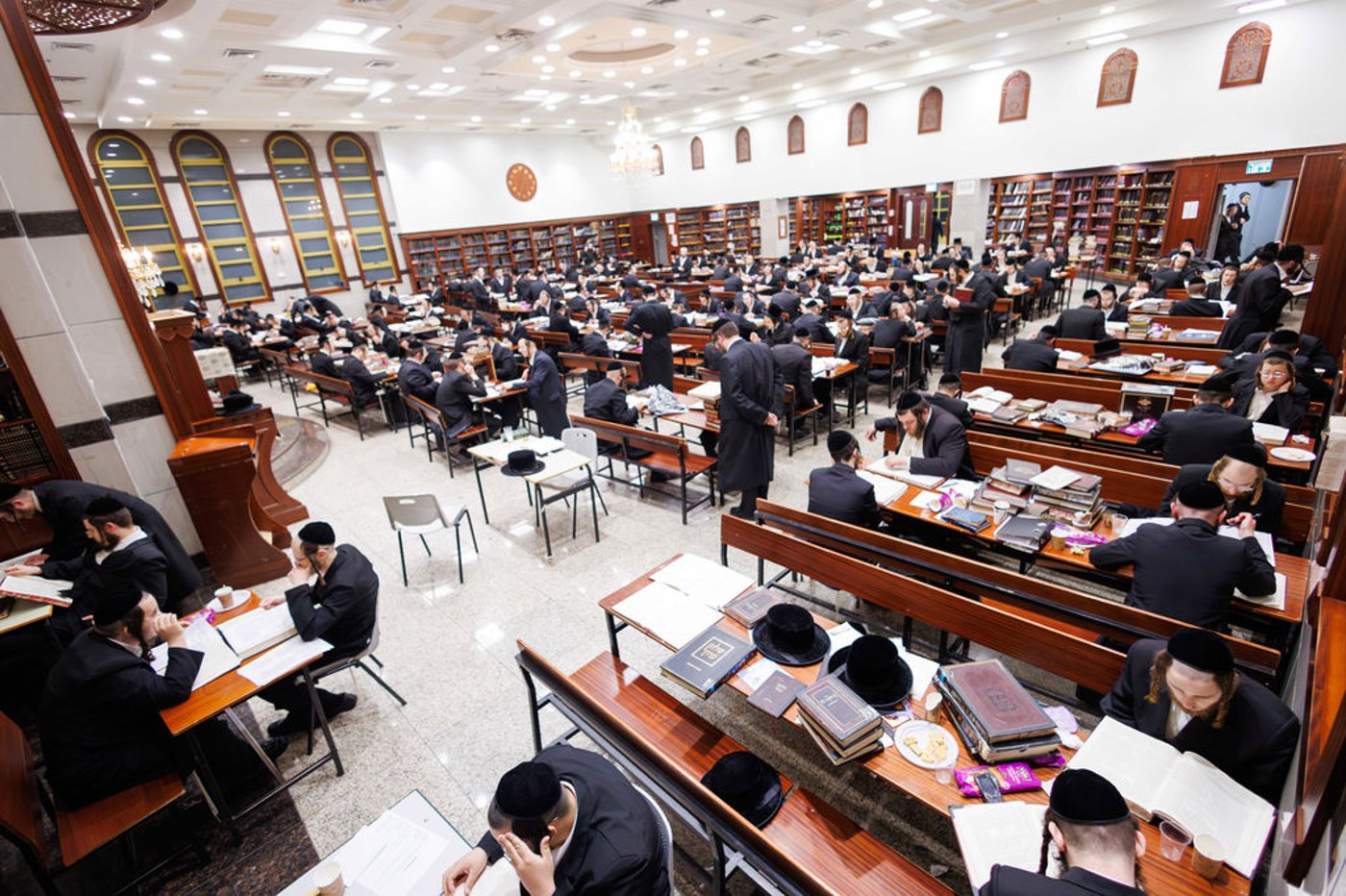 לַיְלָה כְּיוֹם יָאִיר: בהיכל ישיבת 'ישועות משה' ויז'ניץ במודיעין עילית, התאספו מאות תלמידי הישיבה למסגרת לימוד סדר "לילה כיום יאיר" - 10 שעות רצופות תוך כדי תענית דיבור.