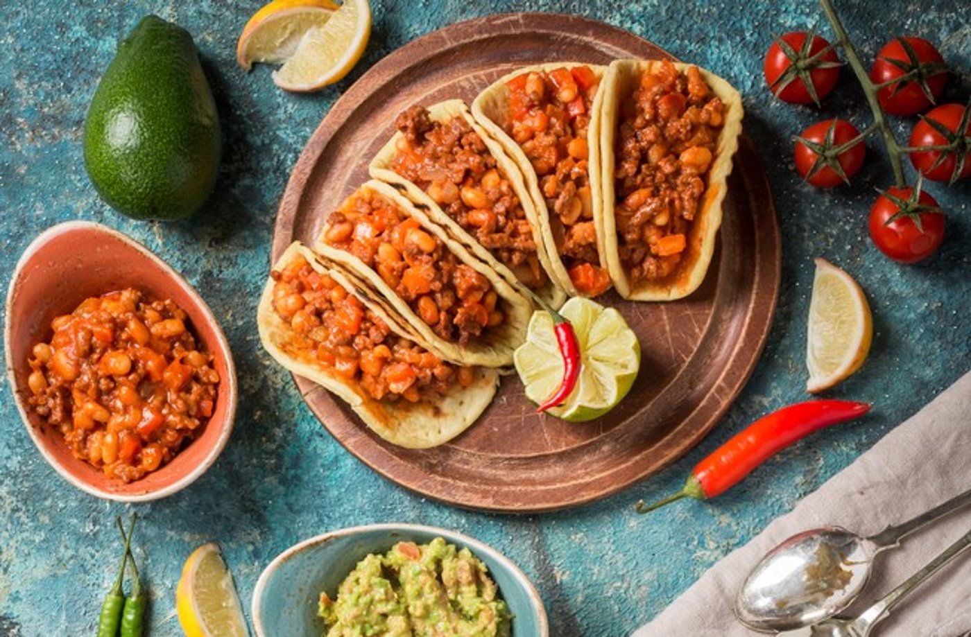 4. מחממים כל טורטיה בנפרד במחבת יבשה כדי שתהיה גמישה וקלה לעבודה, פורשים כל אחת על נייר סנדוויץ', מניחים 3-4 כפות ממלית הבשר בשליש משטח הטורטייה, מוסיפים פרוסות עגבנייה וחסה, אם רוצים ומגלגלים יחד עם הנייר. מגישים מיד, חם.
