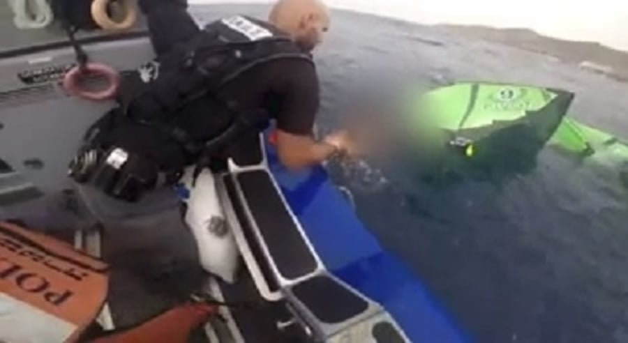 ואכן, השוטרים איתרו את הקטין במים כשהוא תשוש ועייף, חילצו אותו והעלו אותו ואת הציוד שלו אל סירת המשטרה.