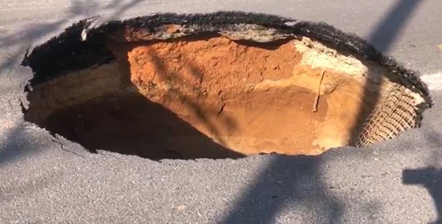זמן קצר לפני שקטע הכביש קרס, ונפער בור בעומק של שלושה מטרים, זיהו עוברי אורח את המתרחש, עצרו את התנועה ואפילו הספיקו לתעד את רגע הקריסה.