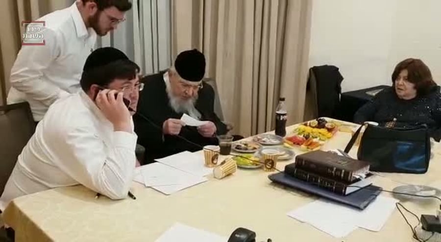 ראש ישיבת עטרת ישראל מרן הגרב"מ אזרחי מלווה בחבר הכנסת המיועד יצחק פינדרוס ובמקורבו יעקב גרוסברד לצד איש העסקים ר' אפי שקדי חבר ועד המגבית ור' יוסי אשכנזי מנכ"ל ישיבת עטרת ישראל, מעיינים בנתוני המגבית לטובת ישיבת עטרת ישראל בחפ"ק המרכזי.