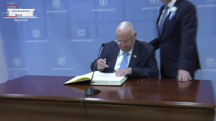 לפני נאומו, חתם נשיא המדינה, ראובן (רובי) ריבלין, בספר הנשיאים של הכנסת. זוהי הפעם השניה בה חותם נשיא המדינה בספר, בו יברכו מעתה נשיאי ישראל את חברי הכנסת לכבוד השבעתם.