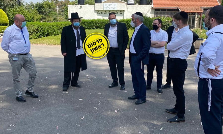 בשעות הצהריים (שלישי) הגיעו בכירי משרד הבריאות ובהם פרופסור איתמר גרוטו, המשנה למנכ"ל משרד הבריאות, לסיור בקרית הישיבה בראשון לציון.