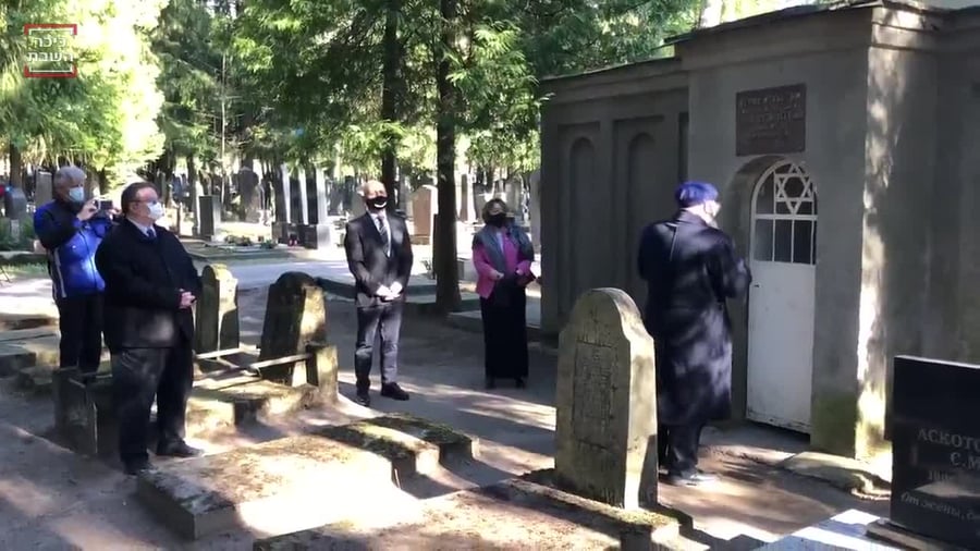 שר החוץ הניח אבן על קבר הגאון ודיבר על הקשר העמוק שבין ליטאים ליהודים ועל תרומת הגאון להתגבשות "ירושלים דליטא" כמרכז רוחני עולמי.