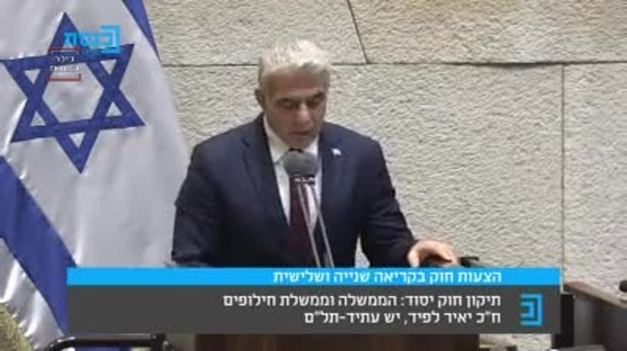 לפני ההצבעה במליאת הכנסת על אלפי ההסתייגויות שהוגשו נגד חוק הרוטציה שתאפשר את הקמת הממשלה, נאם יו"ר סיעת יש עתיד-תל"ם, ח"כ יאיר לפיד.