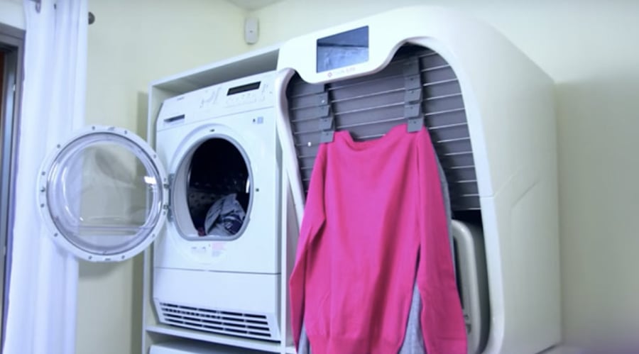 בגדול, כל מה שנצטרך לעשות, זה למקם את המכונה החדשה בסמוך למכונת הכביסה והמייבש, וכשאלה מסיימים את פעולתם, אנחנו תולים את הבגדים שדורשים קיפול על אטבים מיוחדים המותקנים על מכונת הקיפול, זרועות רובוטיות ייקחו את הבגד פנימה, ויוציאו אותו מקופל למשעי.