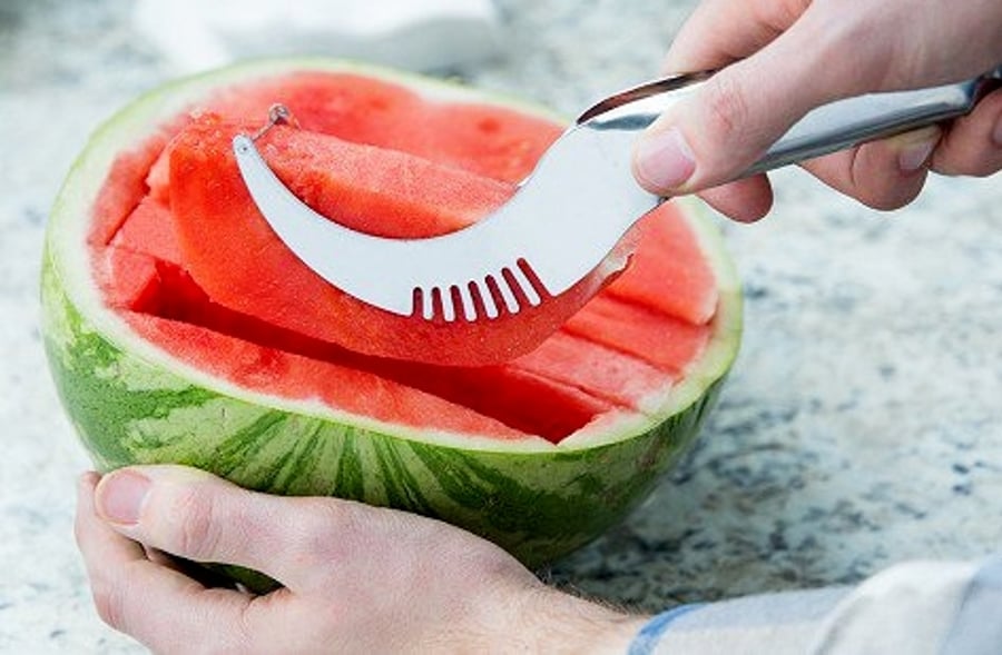 אז זהו שיש דרך אחרת. גאדג'ט חדשני לפריסת אבטיח בצורה קלה ופשוטה המאמץ היחיד שתדרוש מכם, זה לחצות את הפרי המאתגר באמצע. ומה אחר כך? מחליקים את הפורס על שני חצאי האבטיח, ומגישים לכולם פרוסות מדוגמות ויפות.