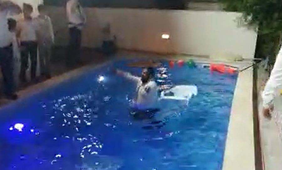באמצע החתונה: אחד החוגגים קפץ לבריכה