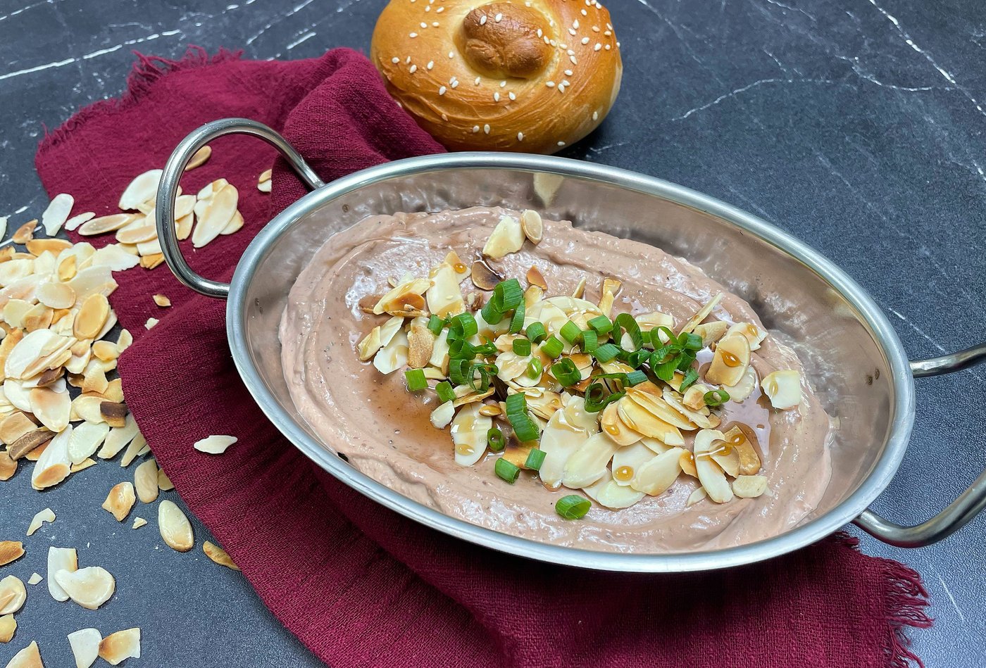 2. מצננים מעט את הכבדים, מעבירים לקערה, מוסיפים את הביצים הקשות, המייפל והמיונז, מתבלים במלח ופלפל שחור וטוחנים למחית קרמית עם מוט בלנדר או במעבד מזון.