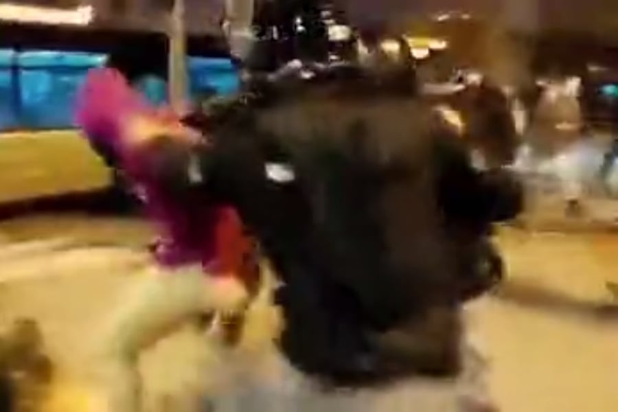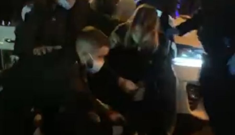 סרטון של אחד המעצרים, שהגיע ל'כיכר השבת', מתעד רגע מקומם ומזעזע: שוטרת נתקפה לפתע בזעם, וכאחוזת אמוק הלמה באגרופיה בפניו ובראשו של מפגין שכבר היה בידי השוטרים והביע התנגדות למעצרו.