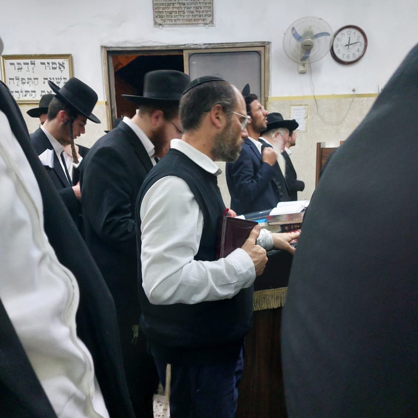בבית הכנסת הר צבי בירושלים ראינו את איש 'אגודת ישראל' יוסי דייטש מתפלל ערבית בכוונה רבה.