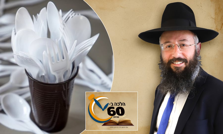 "הלכה ב-60 שניות" עם הפוסק הגאון רבי בנימין חותה - פינת הלכה יומית קצרה ואקטואלית היישר מאולפני 'כיכר השבת' | ובפינה היומית: האם כלים חד פעמיים צריכים כשרות לפסח? • צפו (יהדות)