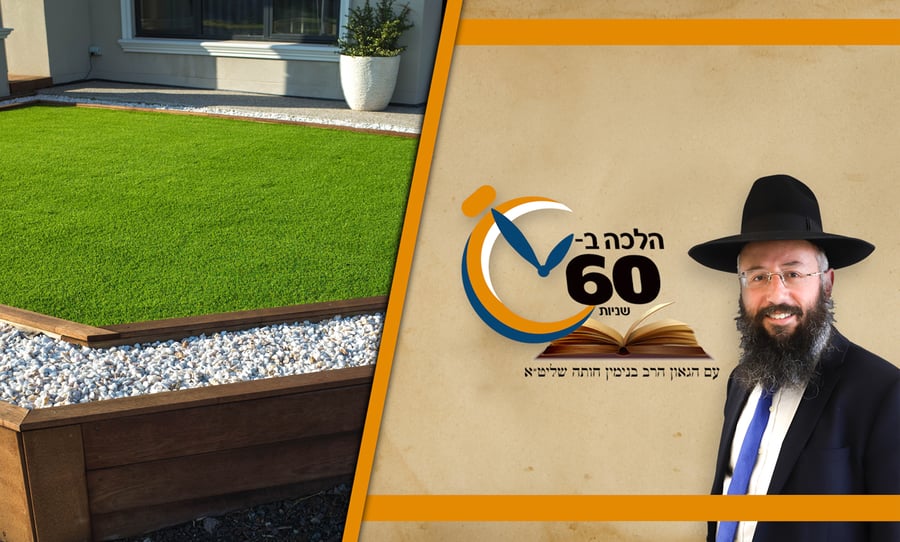 ובפינה היומית: הלכה מהלכות שבת קודש ויום טוב. פעמים יושבים בגינה, מה זה גינה? מרפסת, ויש להם דשא סינטטי. מה זה? דשא מפלסטיק, נראה כמו טבעי, עשו הדבקה ברצפה, הם יושבים שמה, הכל בסדר. בא אחד הילדים או האיש, רוצים ליטול ידיים, איפה נוטל? על הדשא. קם אחד אומר לו, 'יראה שאתה שופך באדמה על הדשא, אסור. מראית עין'. האם הותר או אסור?