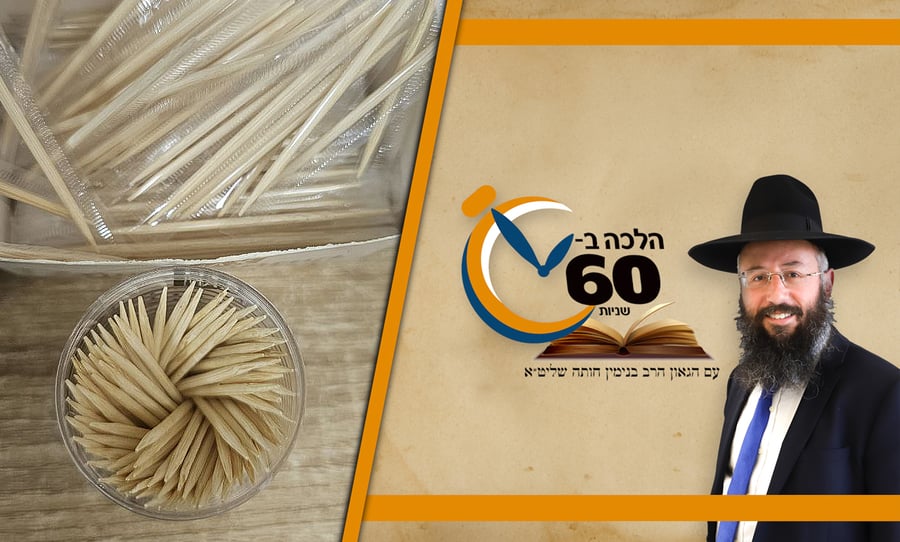 ובפינה היומית: הלכה מהלכות שבת קודש. פעמים אדם נתפס לו בשר בין השיניים והוא מפתח רעיון. יש איזו חתיכת ניילון פה, יש פה איזה ניילון של הסעודה של השולחן, עוד מעט זורקים אותו, הוא לא חותך ממנו, הוא לוקח אותו בצד לידו, מגלגל אותו, וכשהוא מגלגל אותו, עושה אותו דק, נהיה לו כמו קיסם. מכניס אותו בין השיניים, מנקה את החתיכות, שיריים של הבשר, האם הדבר הזה נקרא עשיית כלי בשבת או לא? עשית פה קיסם. וכי מותר לקחת עץ, לגלף אותו ולעשות ממנו קיסם? זו השאלה.