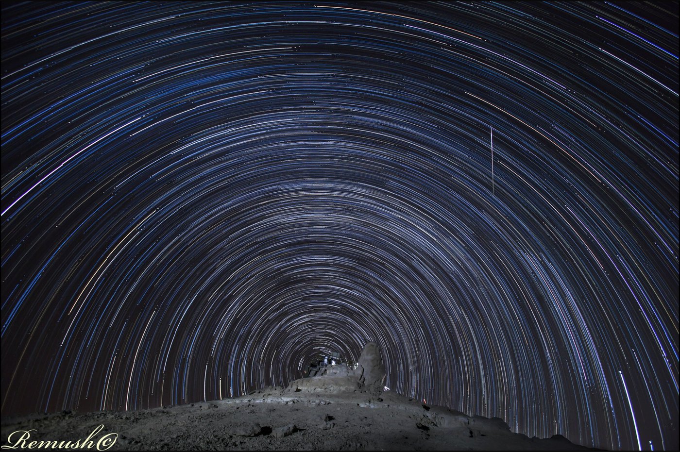 בחיבור של כל התמונות בתוכנה מיוחדת לצילום מהסוג הזה תקבלו חיבור של כל תנועת הכוכבים, כאשר הצורה הסיבובית של הכוכבים נוצרת בגלל סיבוב כדור הארץ.