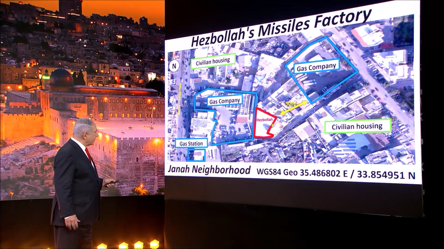 "הוא כהרגלו רוצה להסית נגד חיזבאללה, ומביא מפות וצילומים", אמר נסראללה. "הוא טען שיש אתר חיזבאללה ליד מתקן גז – וקשר בינו לבין הפיצוץ בביירות. הזמנו את התקשורת. אם באמת יש לחיזבאללה עשרות טילים – אין סיכוי שנספיק להוציא הכול תוך שעה וקצת".