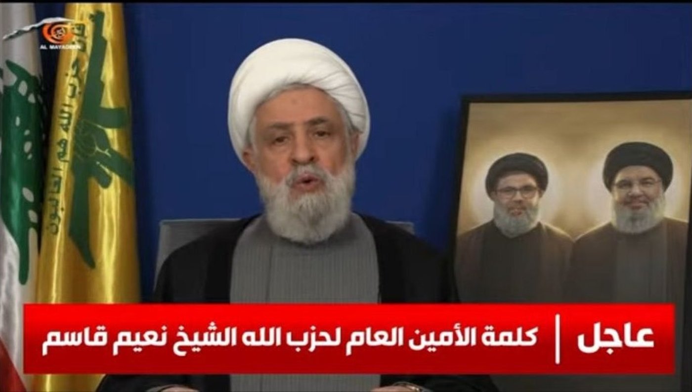 מזכ"ל החיזבאללה נעים קאסם, החל לנאום לפני זמן קצר היום (רביעי), ונאומו משודר כעת בלבנון. קאסם, היה אמור לשאת אתמול נאום, אולם חיזבאללה הודיע ברגע האחרון שהנאום נדחה. חיזבאללה לא פירט מה הסיבה לדחייה, אולם בלבנון דיווחו כי הרקע לדחיית הנאום הוא מרתון השיחות והפגישות של השליח האמריקני למזרח התיכון עמוס הוכשטיין, שמסיים היום את הסבב בלבנון בדרכו לישראל.