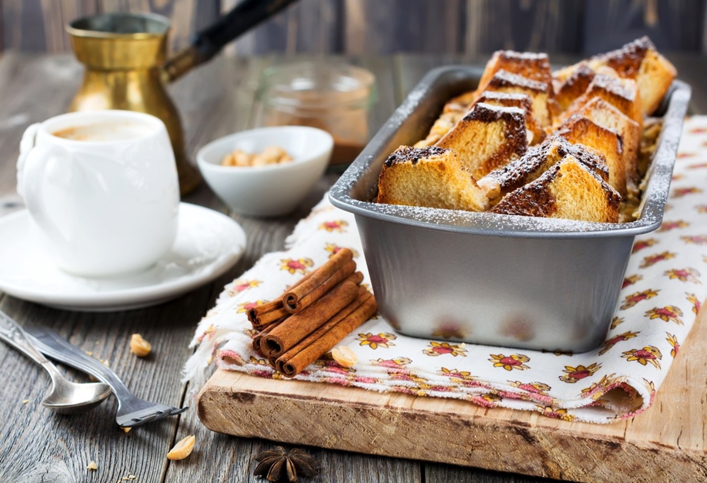 3. בקערה, טורפים היטב את הביצים עם השמנת המתוקה, החלב, הסוכר ותמצית הווניל, ויוצקים את התערובת על החלות.