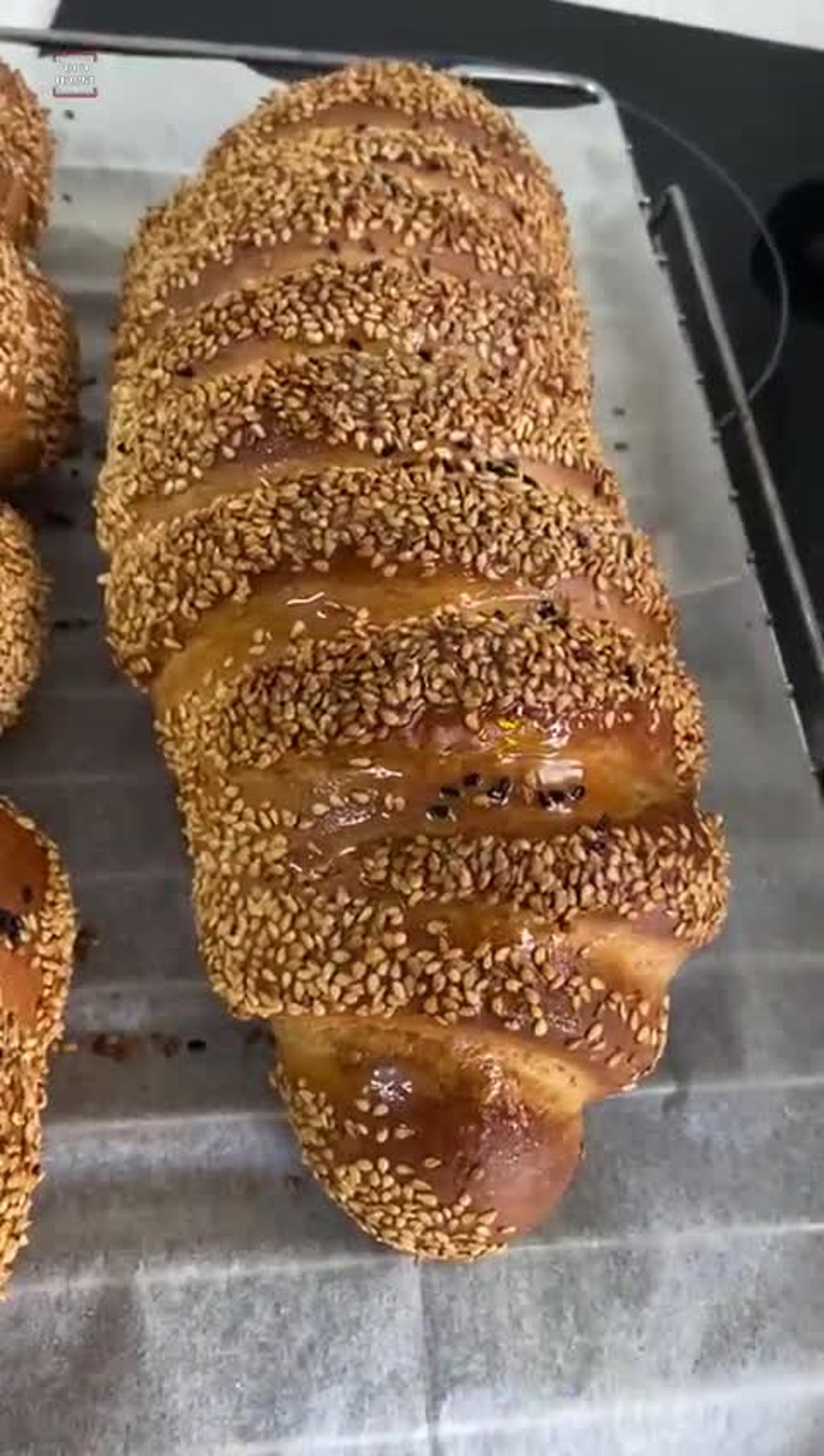 8. אופים בתנור שחומם מראש ל-200 מעלות במצב טורבו במשך 30-40 דקות (תלוי בתנור) עד שהחלות משחימות היטב. מוציאים את החלות מהתנור ומשפריצים עליהן מיד בנדיבות שמן זית. מניחים בצד לצינון מלא.