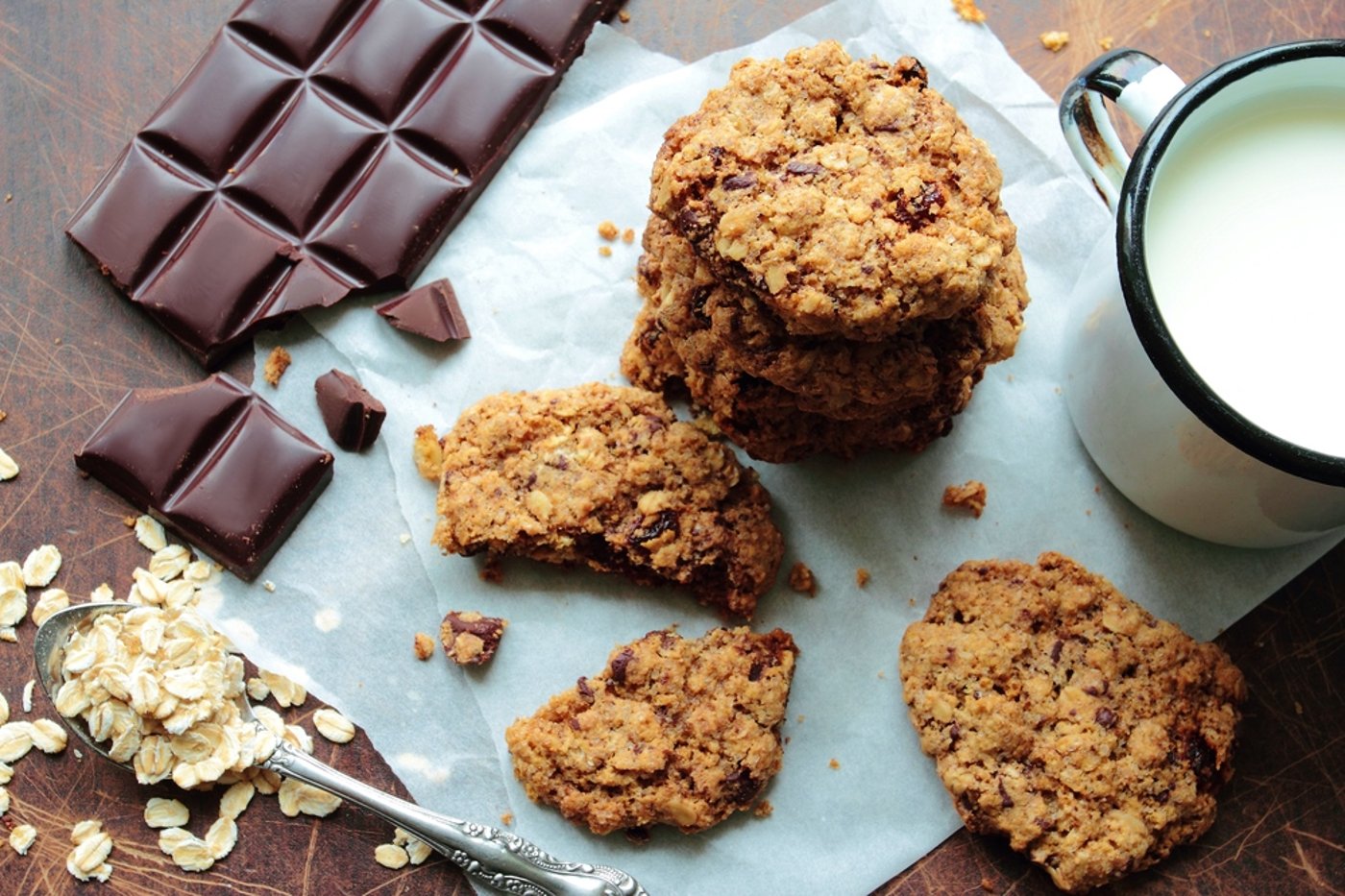 רגע לפני: קפה הוא התירוץ שלכם לנשנש עוגיות מהקופסה? לא עוד. הנה מתכון לעוגיות שיבולת שועל ושוקולד פריכות ורכות שלא צריך שום תירוץ כדי לחסל אותן. טיפ: במקום שוקולד-צ'יפס תעשייתי, השתמשו בחתיכות שוקולד מריר איכותי והתוצאה תשדרג פלאים.