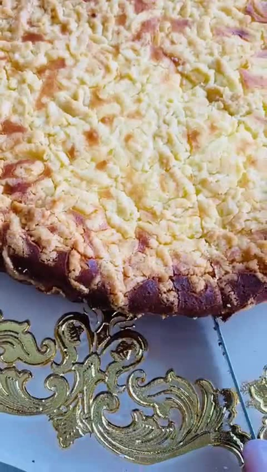 9. את שאריות הבצק ששמרנו במקרר, מגרדים בפומפייה גסה מעל מלית הגבינה.