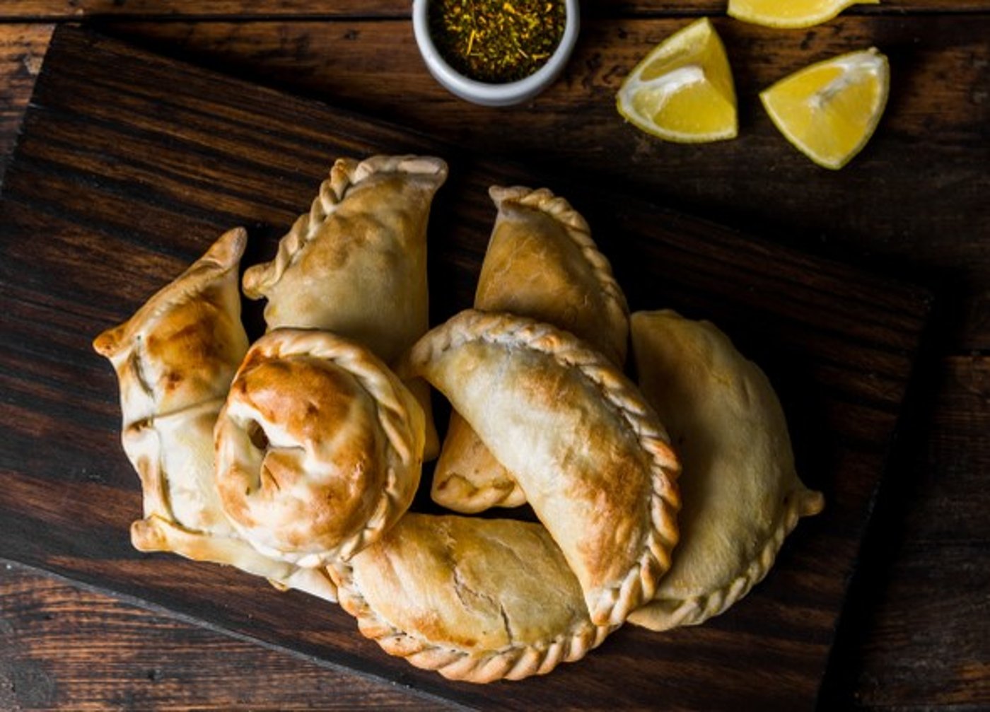 8. על משטח מקומח, יוצרים מכל חלק בצק עיגול בעובי 1 ס"מ. מניחים במרכזו ממילוי העוף, מקפלים לחצי ומהדקים בקצוות. מסדרים בתבנית המוכנה ואופים במשך 20 דקות או עד שהאמפנדס מקבלים גוון זהוב יפה.
