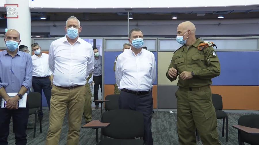 שר הבריאות יולי אדלשטיין אמר: "אני מודה לשר הביטחון על האירוח ובעיקר על שיתוף הפעולה הנהדר, בין משרד הבריאות לצה"ל ופיקוד העורף בפרט. אנחנו במשבר מאוד לא פשוט, פיקוד העורף היה שותף של משרד הבריאות מן היום הראשון של המשבר. לצערי כולנו רואים שהמספרים של החולים עולים, יש צורך בשיתוף פעולה ממשי ואנחנו נוכל לנצח את הנגיף, רק ביחד".