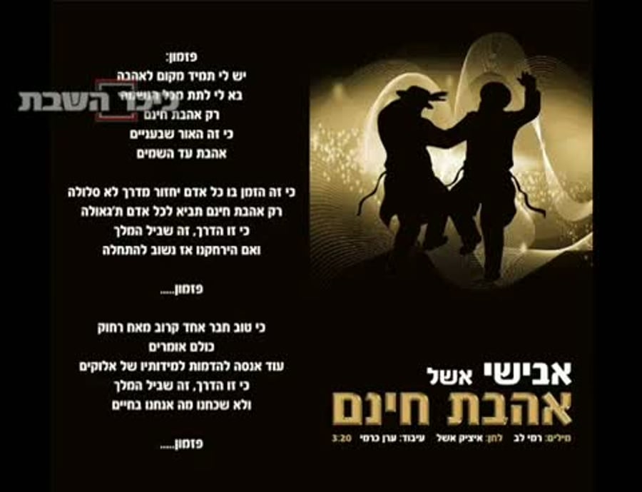 הזמר אבישי אשל מתקדם לקראת אלבום הבכורה ומציג סינגל שני שצפוי להפוך ללהיט הבא - הסינגל "אהבת חינם" אותו הלחין אחיו איציק אשל, המילים של רמי לב, והעיבוד של ערן כרמי. 'כיכר השבת', כמו תמיד, מגיש לכם בכורה לסינגל שיחמם לכם את החורף (שירים, מוזיקה מזרחית)