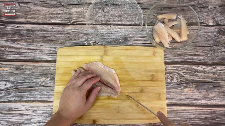 3. במקביל, משרים את הדגים במלח או בלימון למספר דקות כדי לנטרל ריחות דומיננטיים, שוטפים היטב וחותכים אותם לרצועות דקות.