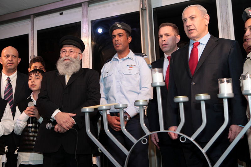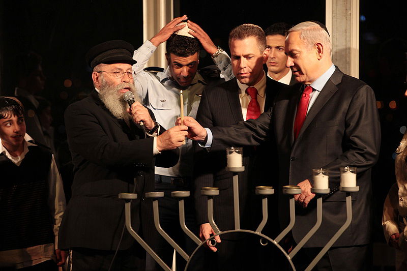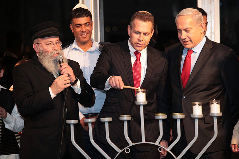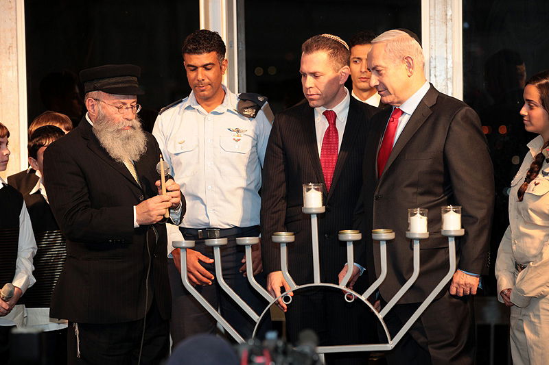 ראש הממשלה בנימין נתניהו יחד עם השר להגנת הסביבה גלעד ארדן בניצוחו של הרב יעקב גלויברמן, הדליקו אמש את החנוכיהב הגבוהה ביותר בעולם הנמצאת בפארק 'חירייה'. אלומות האור של החנוכיה מגיעים ל-10 קילומטר. הרב גלויברמן לנתניהו: "אתה מדליק את האור במקום הכי חשוך בעולם - באו"ם. אתה עושה זאת בהחלטתך להמשיך ולבנות בכל חלקי ארץ-ישראל ואתה עושה זאת עכשיו, כאשר כל עם-ישראל צופה בך מדליק את נר החנוכה המסמל את נצחון האור על החושך"