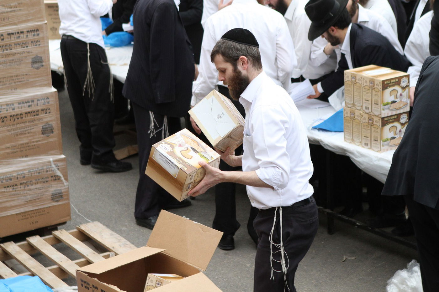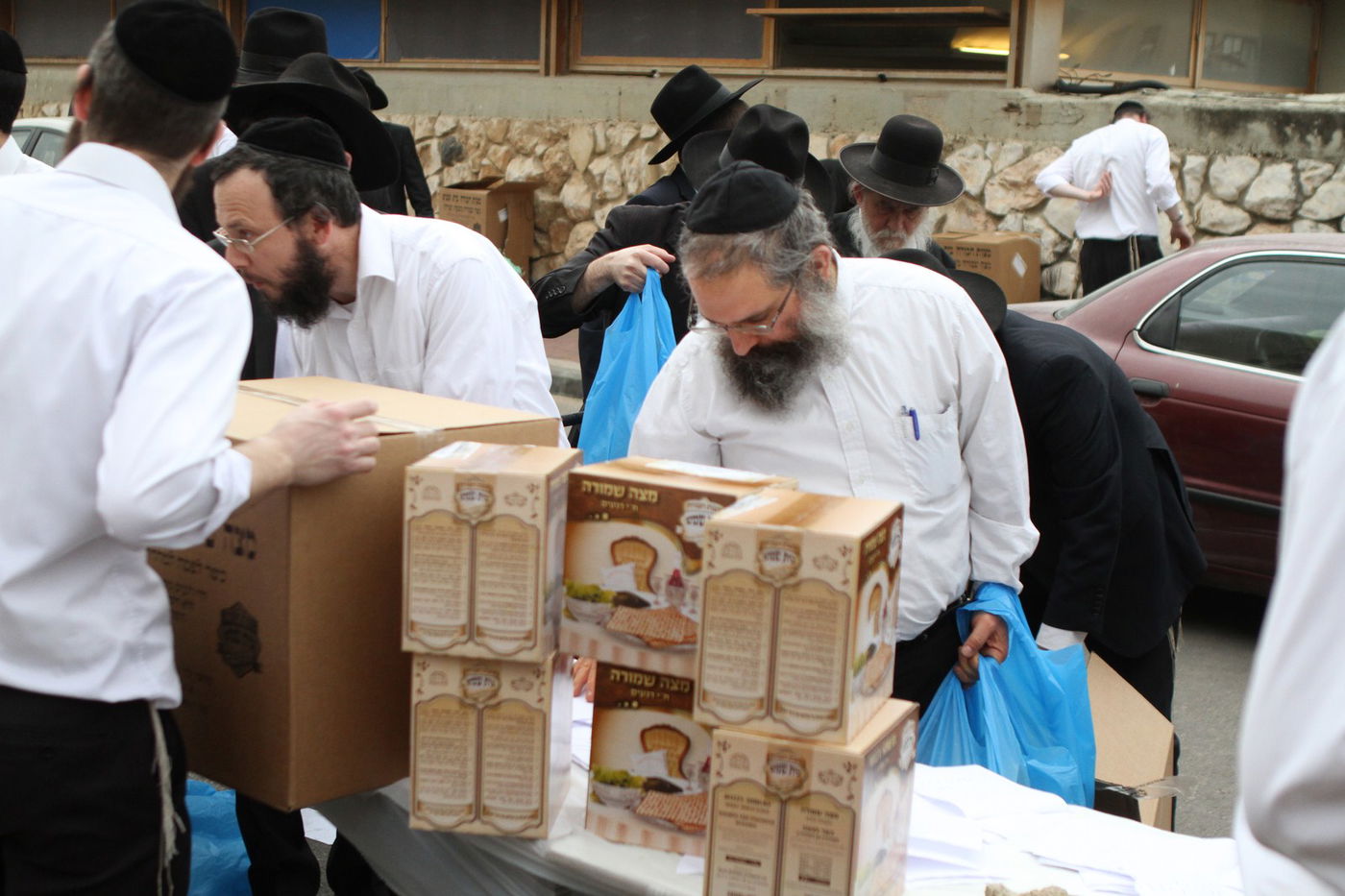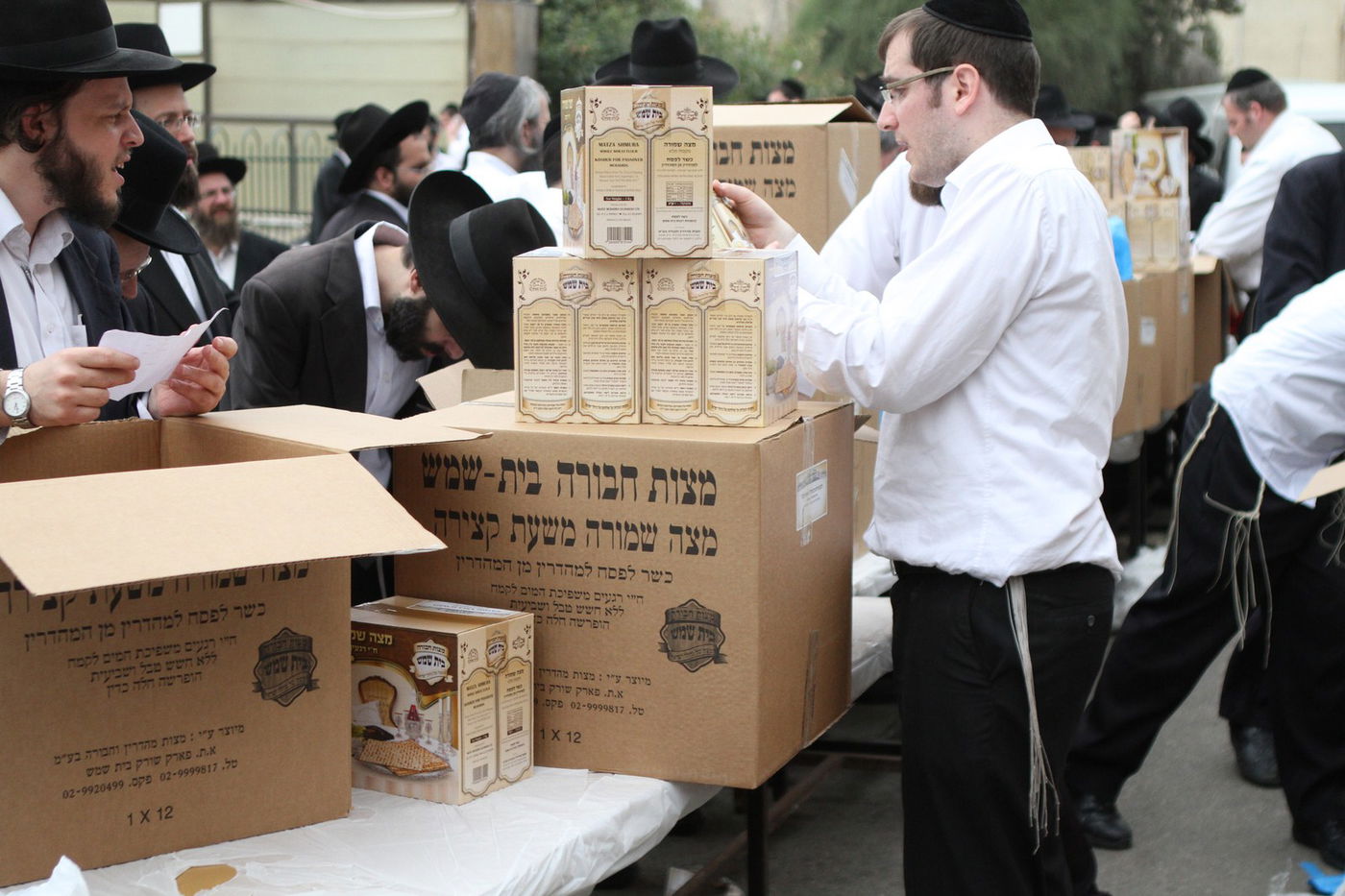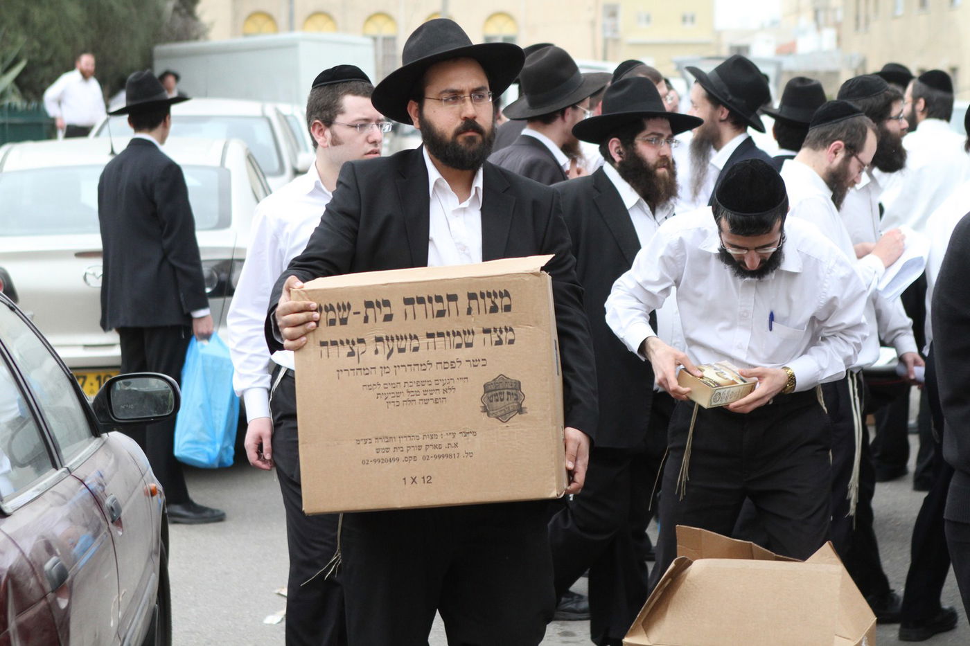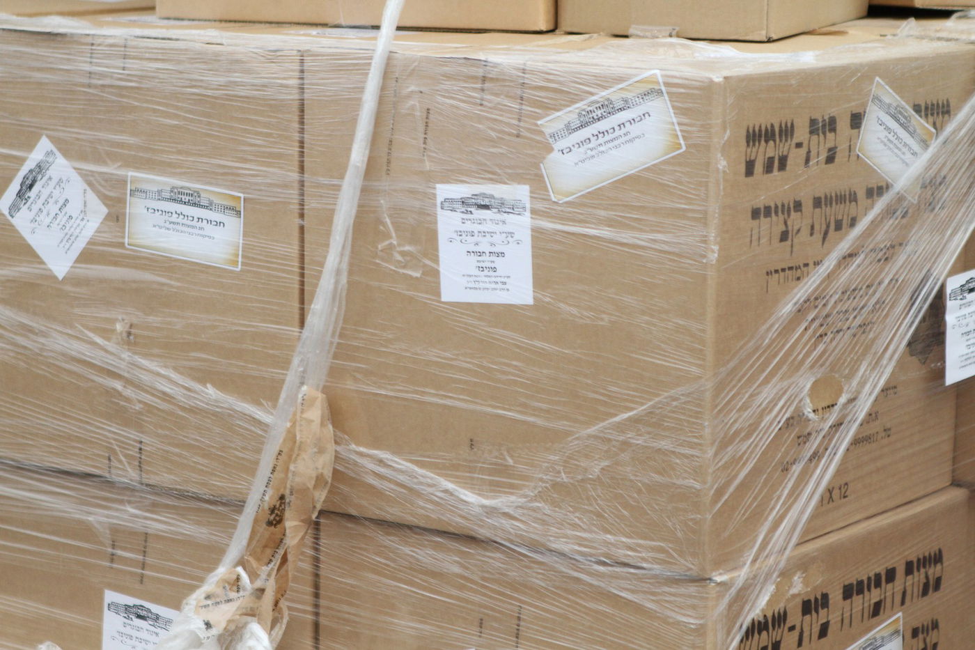 בישיבת פוניבז' מקיימים בהידור את קמחא דפסחא: 8 טון מצות שנאפו בהידור במאפיית "מצות חבורה-בית שמש שבבעלות הרב חיים אהרן סטניצקי - חולקו היום לאברכים מהישיבה במחירי עלות • צפו בתיעוד (צילום: בועז בן ארי)