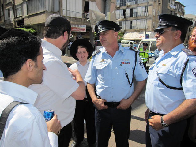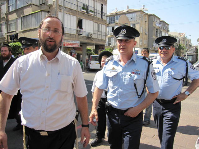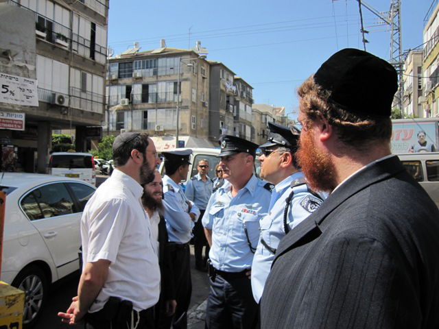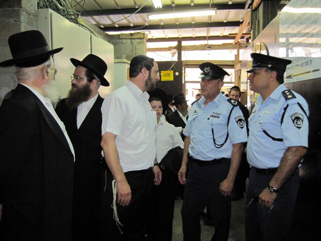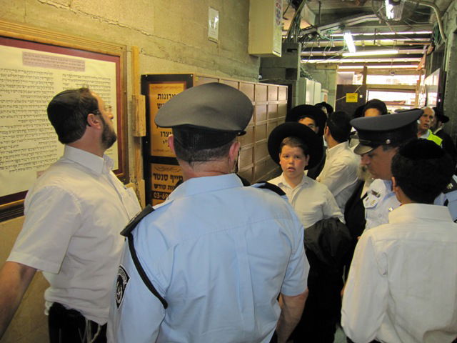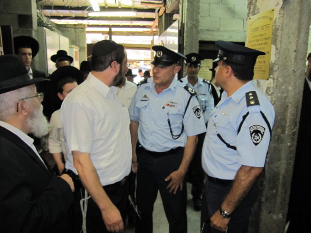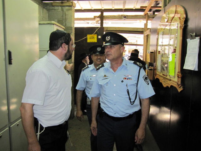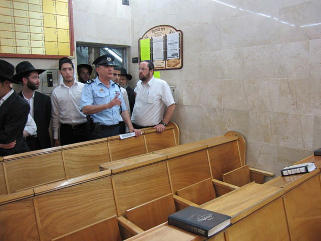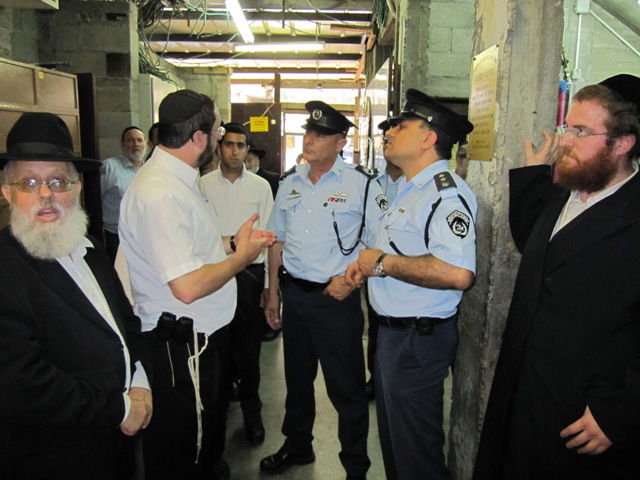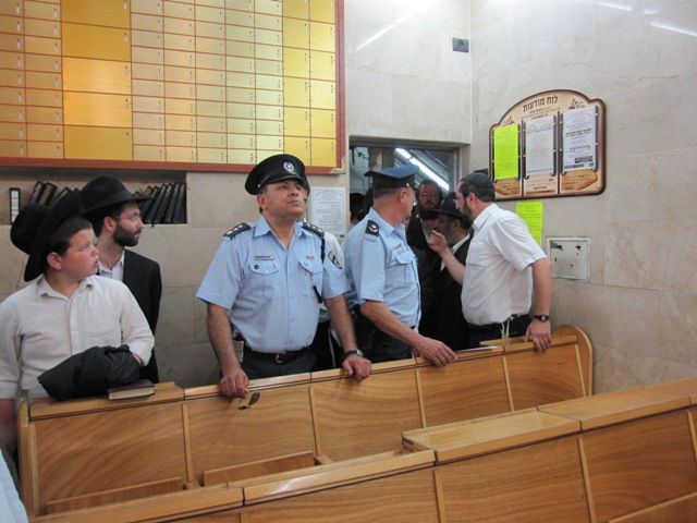 מפקד מרכב דן במשטרת ישראל ערך ביקור מיוחד בבית הכנסת איצקוביץ' בבני ברק, מלווה בגבאי יצחק שיינין. הצלם משה גולדשטיין מגיש גלריית תמונות