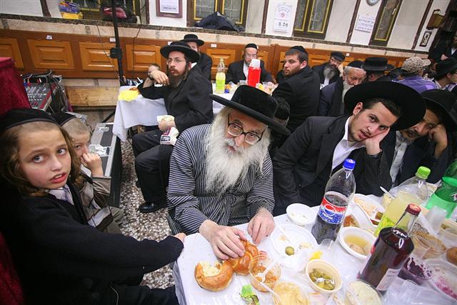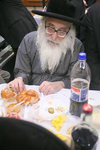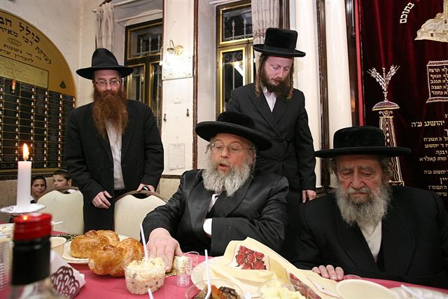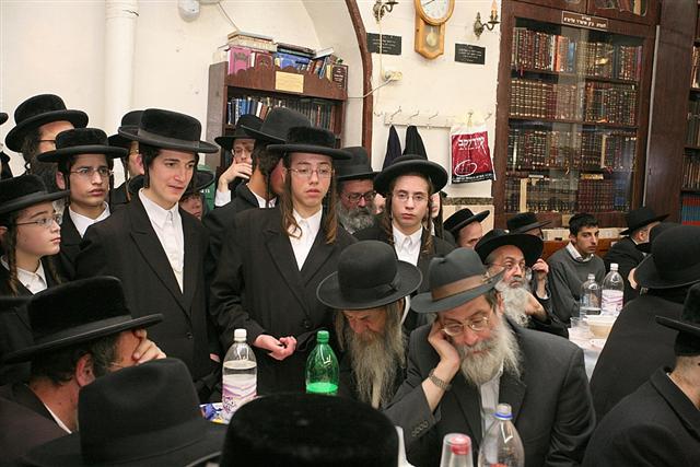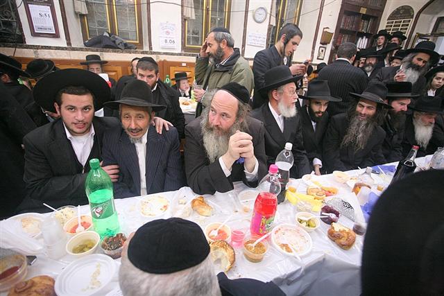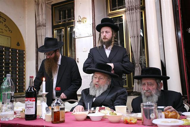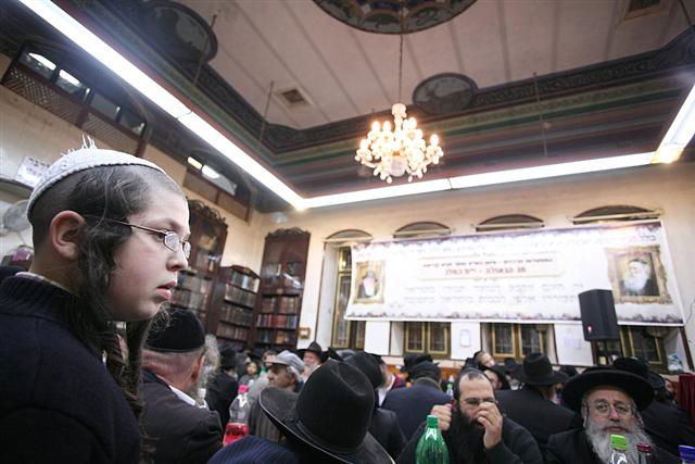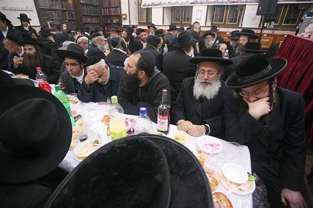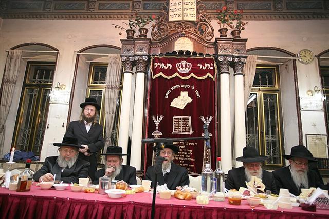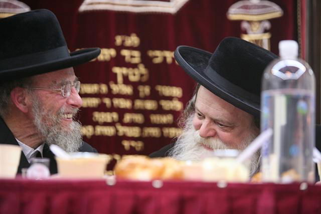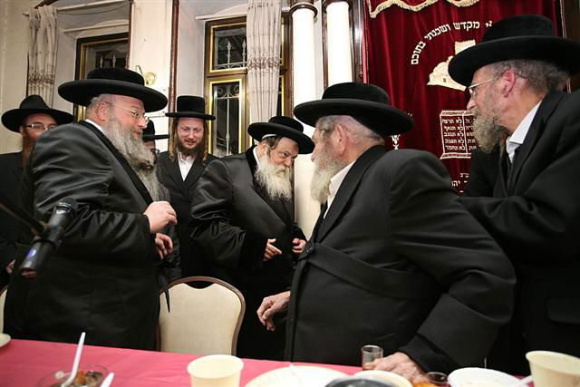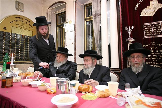 התוועדות י"ט כסלו ייחודית ומרגשת נערכה אמש בבית הכנסת חב"ד במאה שערים ירושלים. ● בהתוועדות הפתיעו בהשתתפותם שני אדמו"רים: כ"ק האדמו"ר מתולדות אברהם יצחק שליט"א שדיבר בעניין מעלת החסידות וכ"ק האדמו"ר מפינסק קרלין שליט"א שדיבר במעלת י"ט כסלו. צילום מאיר אלפסי