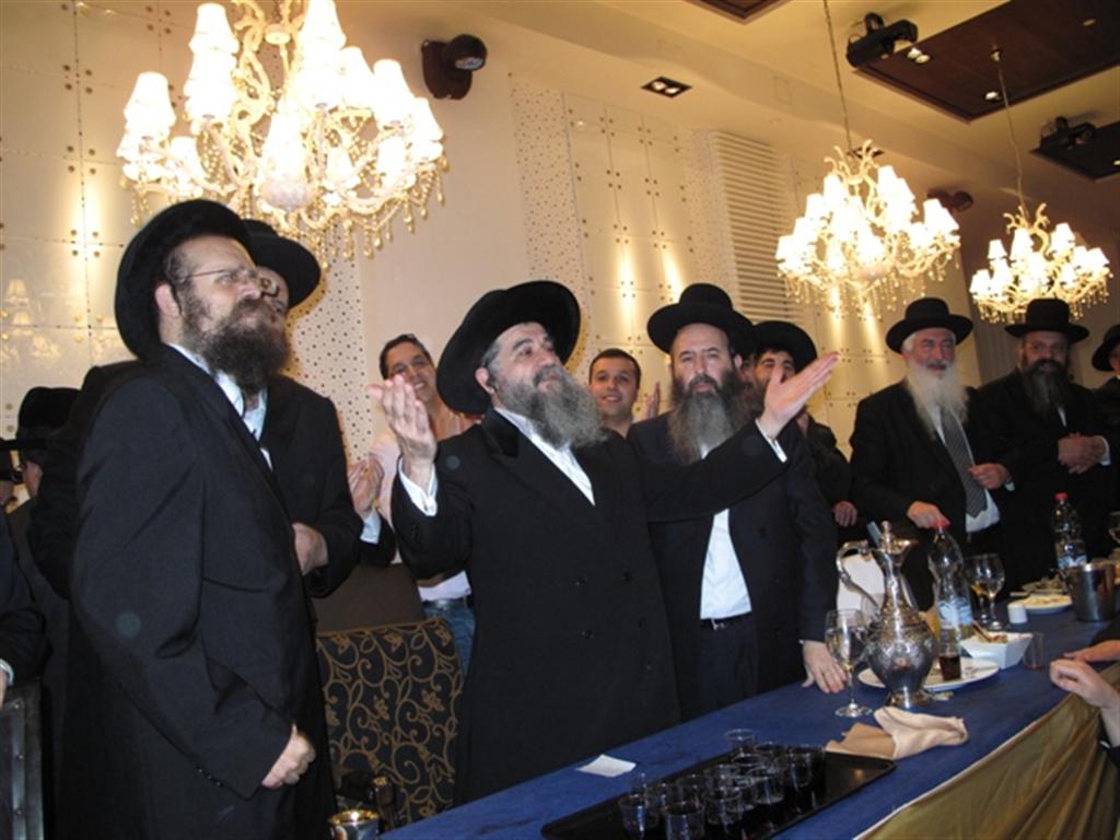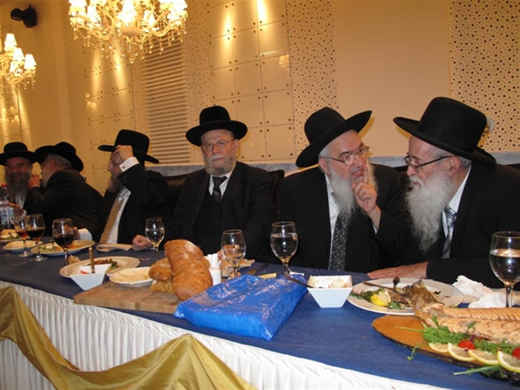 במהלך הערב, הוקמה באולם במת ענק מיוחדת, במרכזה ישב רבי רפאל וקיבל את אורחיו, כשלצידו עשרות רבנים ומכובדים.