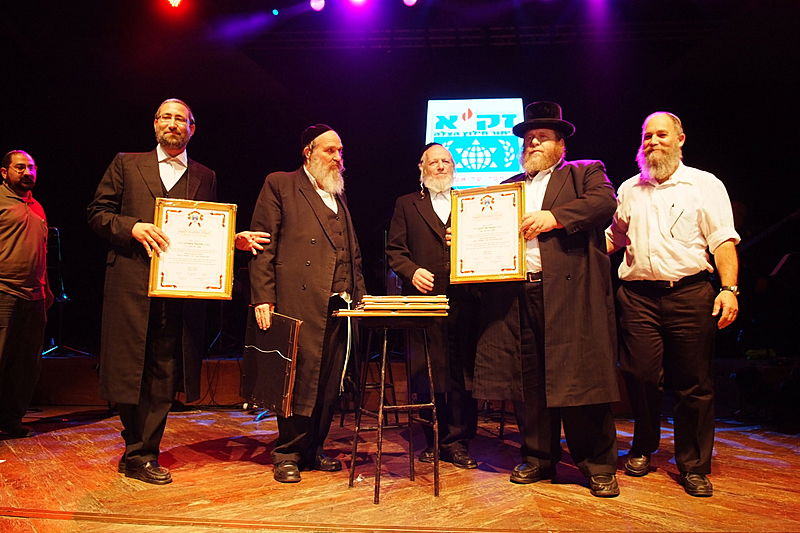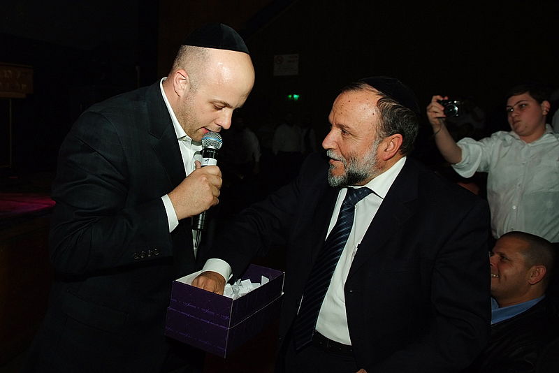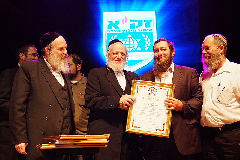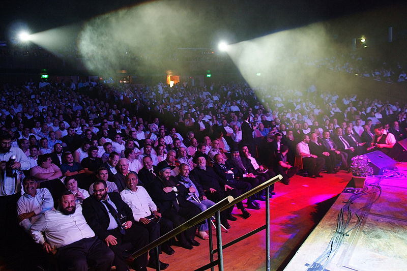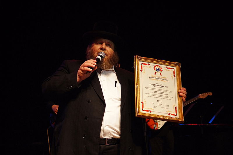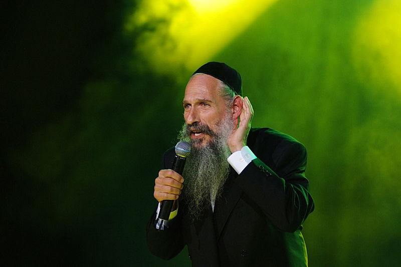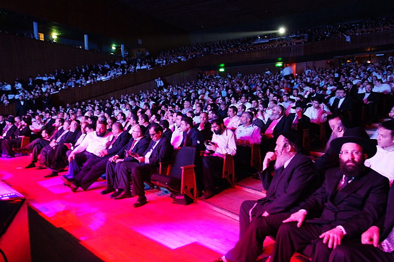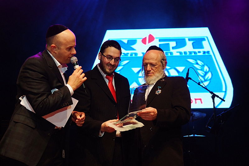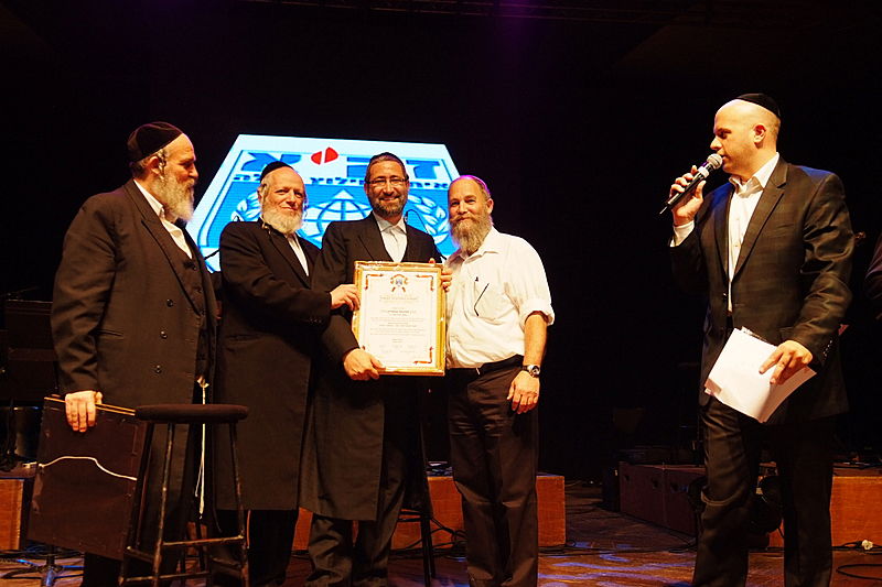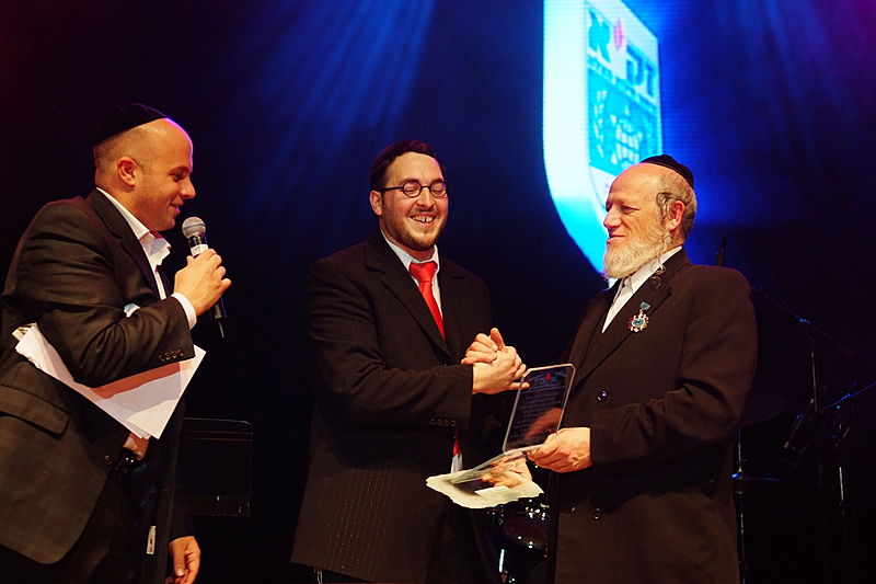 זה קרה השבוע, בערב הצדעה יוקרתי לארגון זק"א בהיכל התרבות תל-אביב. בנואמים: הרב ישראל מאיר לאו. במופיעים: מרדכי בן דוד, ובנו יידל. (צילום וידאו: יעקב לדרמן)